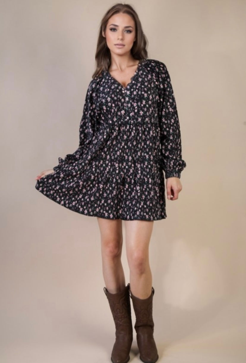 This Black Flower Printed Velvet Babydoll Mini Dress features a cute design that is perfect for any occasion. The soft velvet material provides a comfortable fit, while the floral print adds a touch of femininity. A must-have for any fashion-forward individual.