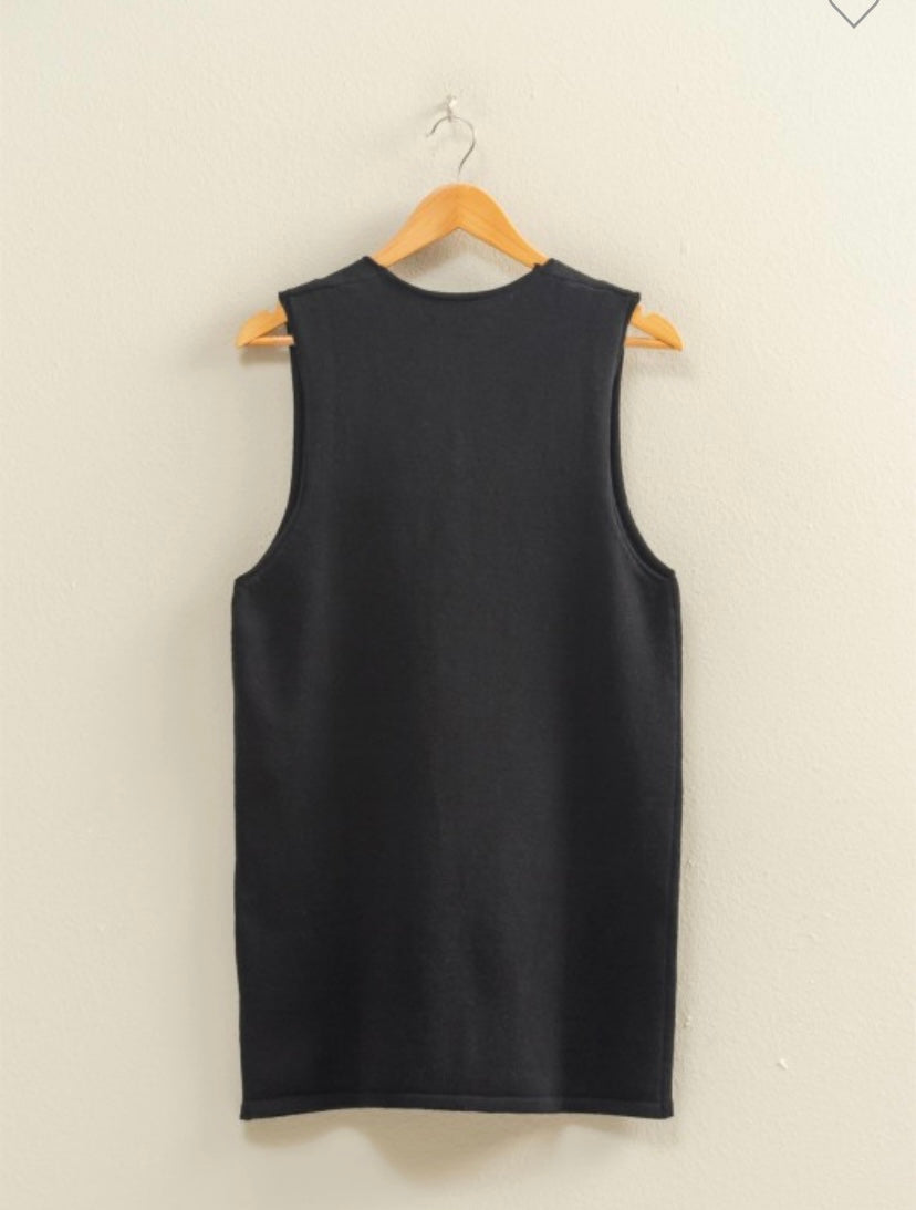 This Black V-Neck Sleeveless Knit Mini Dress is both comfortable and perfect for fall weather. The soft knit fabric allows for ease of movement, while the stylish v-neck design adds a touch of sophistication. Stay cozy and fashionable with this must-have piece.