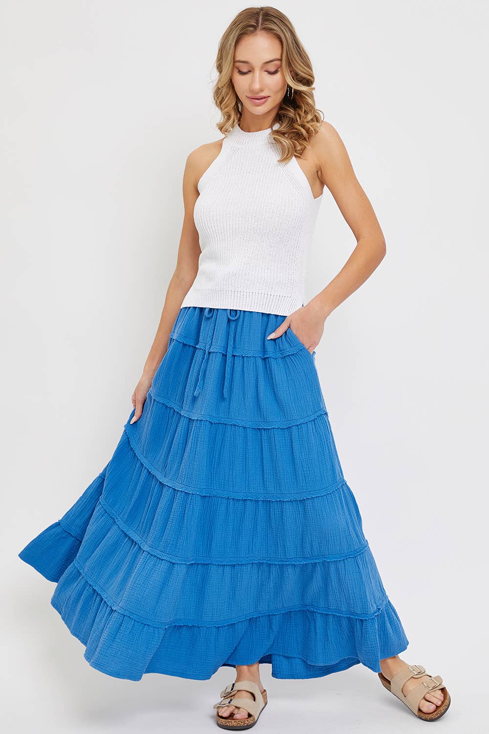 The Ivory Casual Sleeveless Halter Sweater Knit Top is an essential addition for spring wardrobes. Its versatile design complements various maxi skirts, enhancing outfits for casual or semi-formal occasions. This top’s breathable knit fabric ensures comfort, making it suitable for warmer weather while maintaining a stylish appearance.